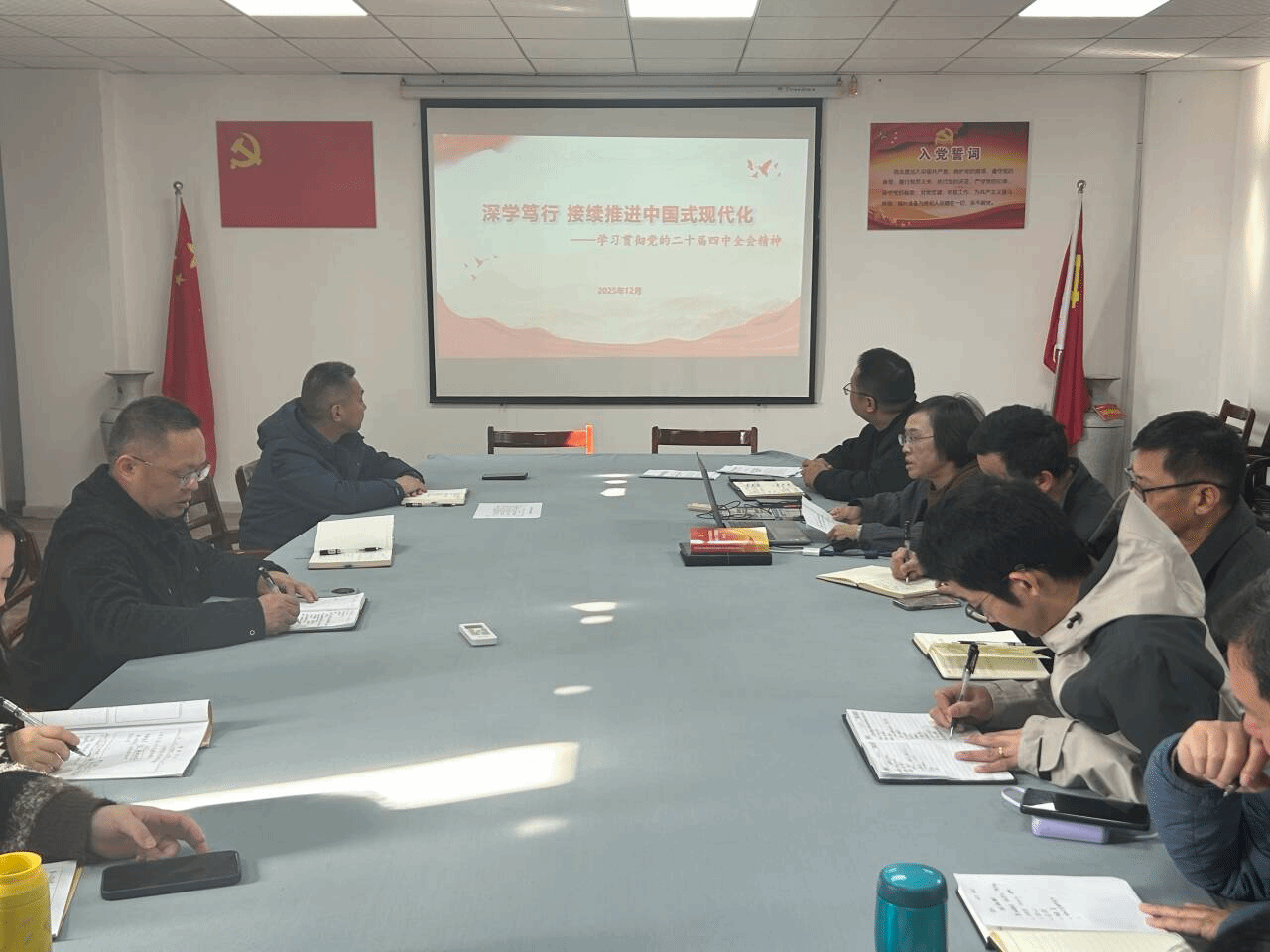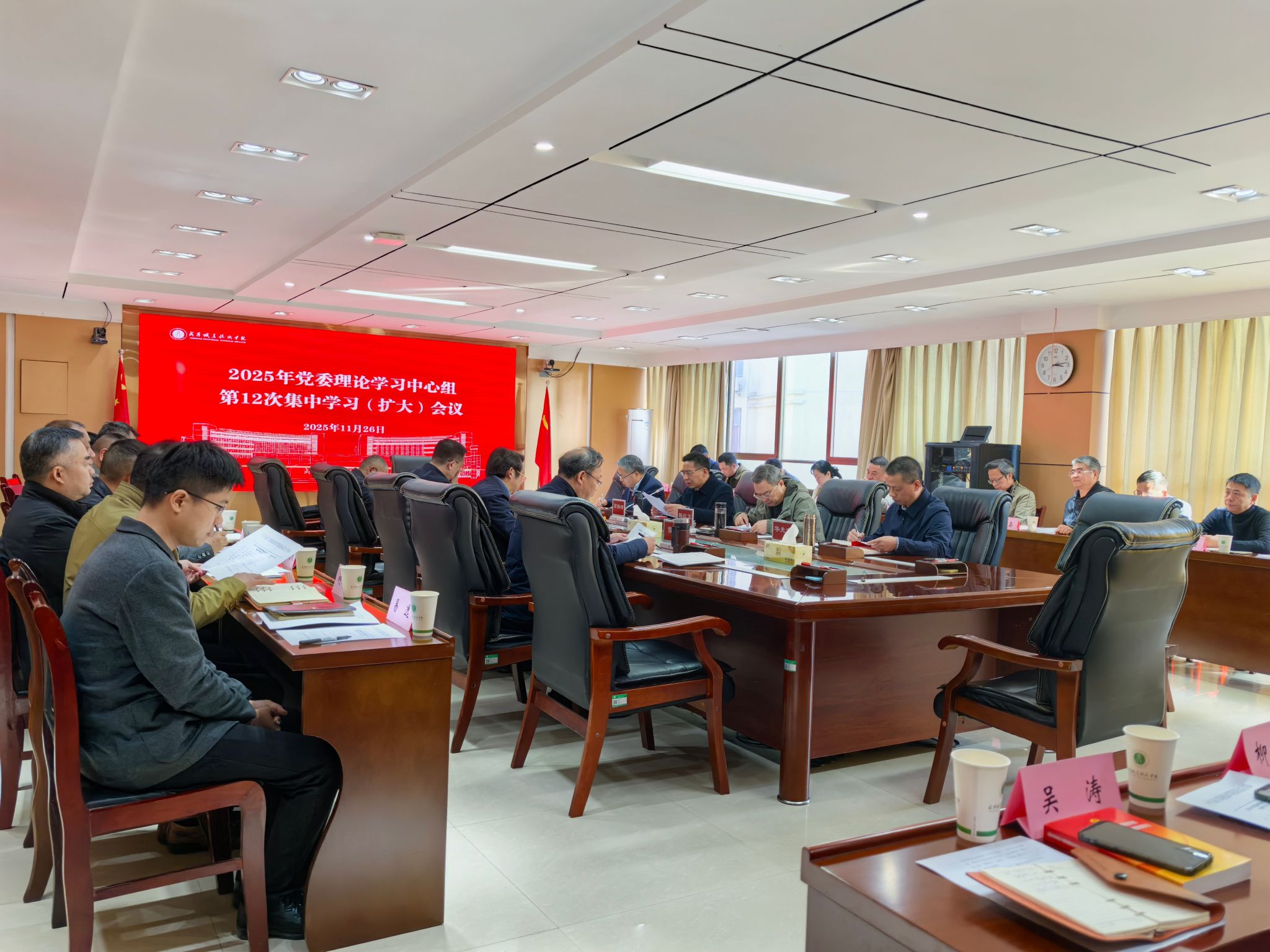 11月26日上午,咸宁职业技术学院党委理论学习中心组召开第12次集中学习(扩大)会议,围绕学习贯彻党的二十届四中全会精神进行学习研讨。会议第一阶段,党委书记高焕清作学习贯彻党的二十届四中全会精神专题辅导报告,校长陈红卫主持。第二阶段,校党委成员结合分管工作作交流发言。全体中层正职干部参加会议。咸宁市教育局党组成员、副局长袁慎彬列席旁听并就学校党委的中心组学习工作发表指导讲话。会议指出,要在“学深悟透”上下功夫,切实把思想和行动统一到全会精神上来。要潜心研读原文,系统把握思想精髓...