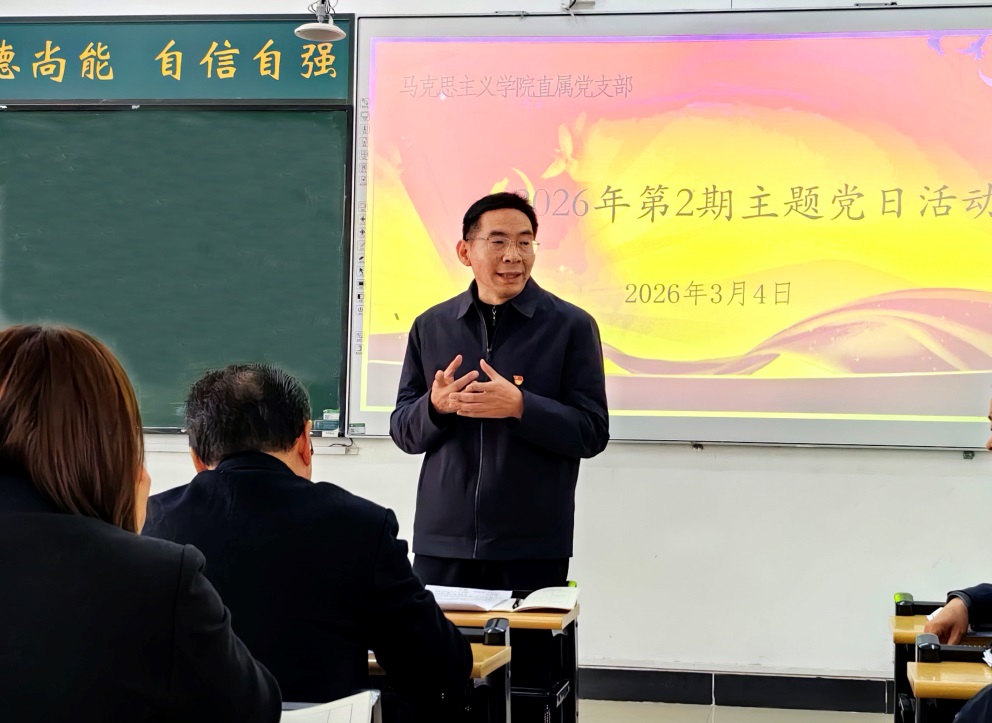 06 | 2026-03为统筹推进新学期各项工作,加强思政课教师队伍建设,提升思政课教学质量与育人实效,3月4日下午,马克思主义学院举行主题党日暨新学期工作会议。校党委书记高焕清参加主题党日活动并讲话,马院全体职工参加会议。会议第一议题由龚斌安领学习近平新时代中国特色社会主义思想,重点学习中共中央政治局民主生活会、二十届中央纪委五次全会等重要会议精神;教师高洁以《党群同心迎新春共育家国好风尚》为题讲授微党课,传递家国情怀、凝聚奋进力量;副院长王翔围绕新学期教学工作重点,详细部署教学安排、课程建设等相关...