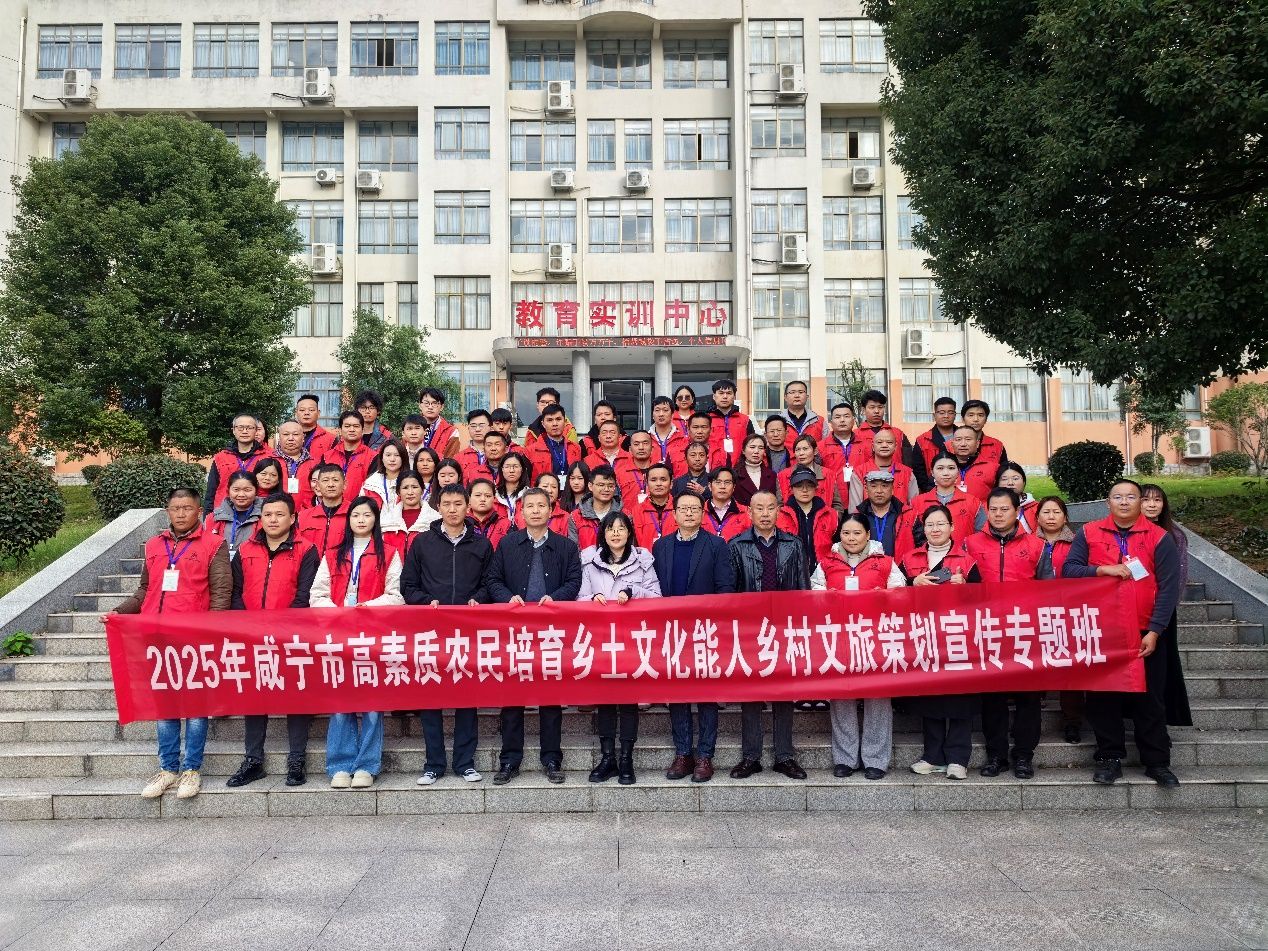 策划绘蓝图,宣传展新篇。11月24日,2025年咸宁市高素质农民培育乡土文化能人乡村文旅策划宣传专题班在咸宁职业技术学院开班,近60名非遗文化传承人与正在从事或有意愿从事乡村文旅项目策划、品牌宣传、运营管理及相关文化传播的农民和乡村从业者齐聚一堂,共探文旅赋能乡村振兴的新路径。