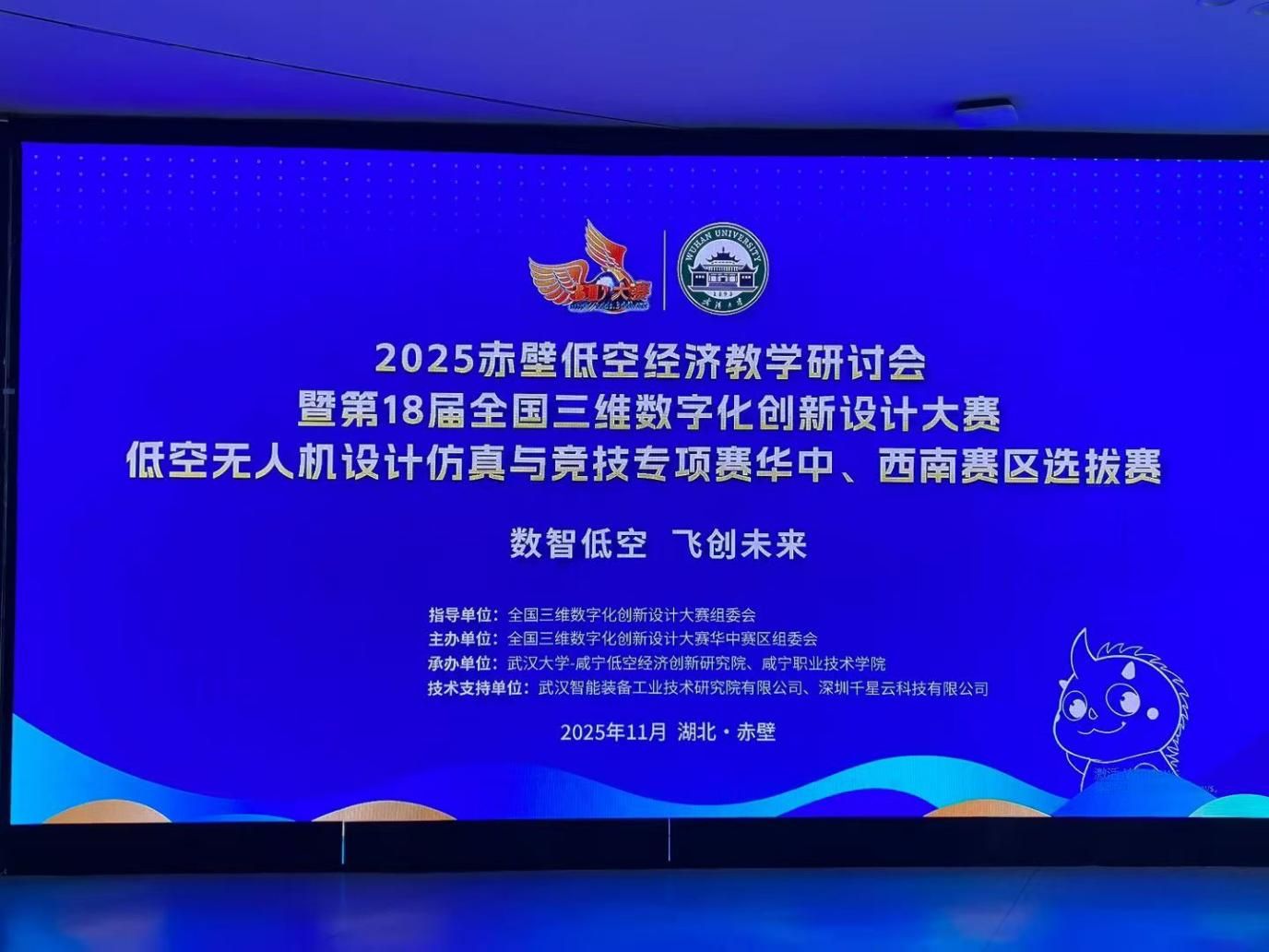 近日,由全国三维数字化创新设计大赛华中赛区组委会主办的 2025 赤壁低空经济教学研讨会暨第 18 届全国三维数字化创新设计大赛低空无人机专项赛华中、西南赛区选拔赛在咸宁中试谷赤壁基地圆满结束,我校和武汉大学-咸宁低空经济创新研究院共同承办本赛事,吸引了来自武汉大学、河南理工大学、西南科技大学等近20所高校的57支代表队参赛。