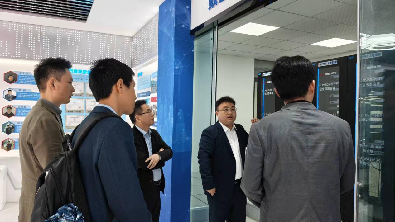 张武洪带领郎朗教授团队参观了数字信息实训大楼,详细介绍了楼宇功能布局、实训场地建设、教学设备配置、专业实践教学等情况,让调研团队直观了解了学院办学条件与实践教学特色。