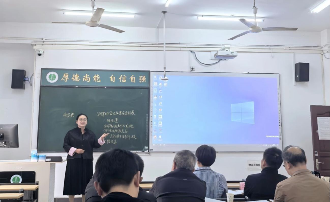 集体备课会上,“第四届全国思政课教学展示赛”参赛选手柯琳老师围绕“法律的含义及其历史发展”进行了现场教学展示。