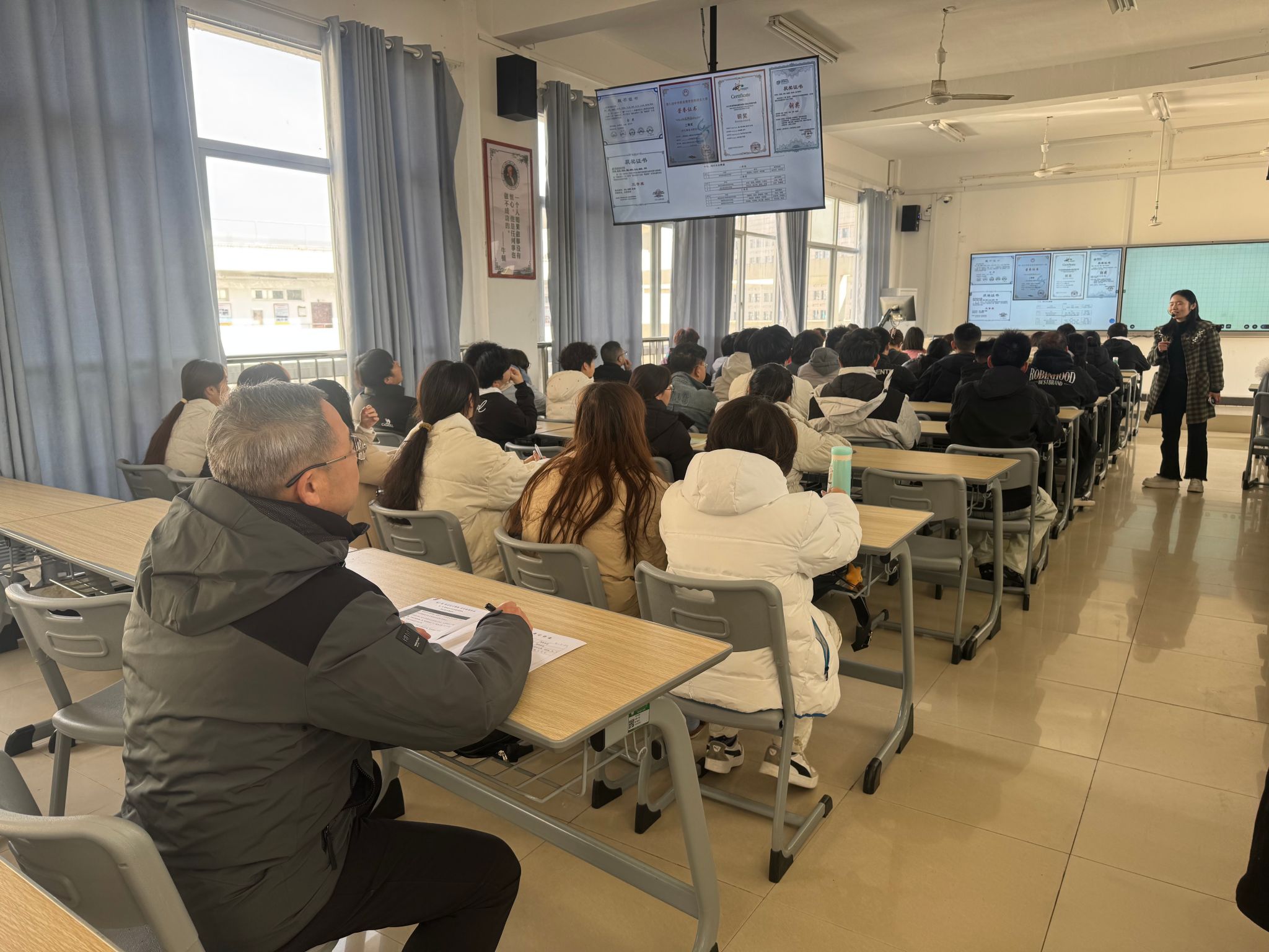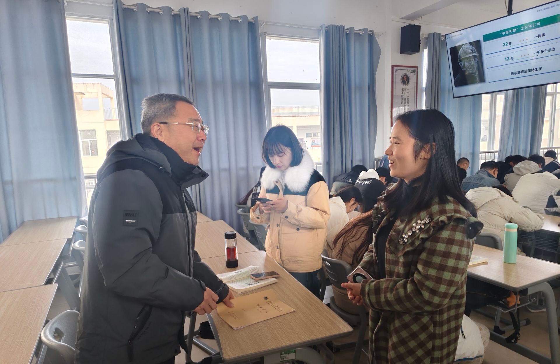 为深入贯彻落实《教育部办公厅关于开展2025-2026学年高校思政课课堂教学提升行动的通知》的工作要求,11月18日上午,校长陈红卫走进文华楼六楼B602教室,随堂听取了马克思主义学院教师陈文霞讲授的“思想道德与法治”课。