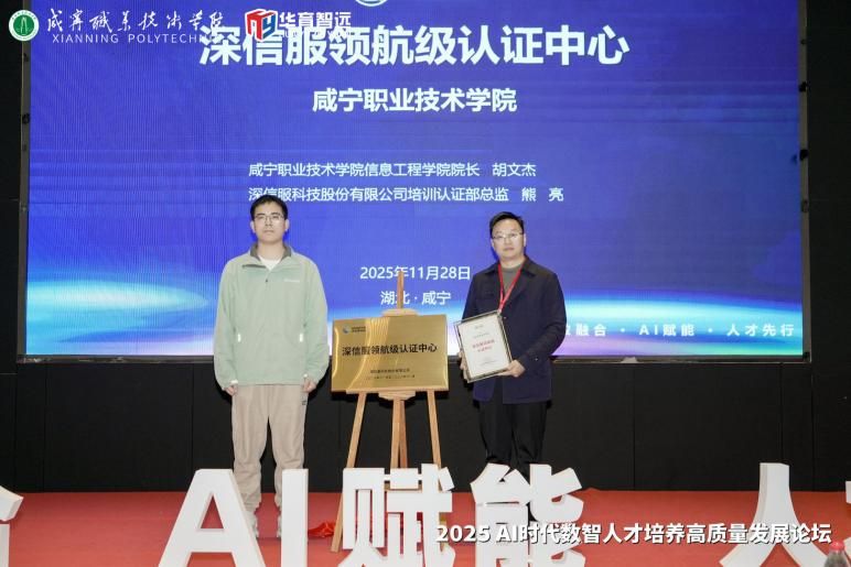 人才的成长,离不开专业标准的引领;行业的进步,需要权威认证的支撑。深信服作为行业领军企业,其领航级认证体系为技术人才的能力认可提供了重要标杆。深信服科技股份有限公司教育事业中心熊亮为我校授予“深信服领航认证中心” 牌匾。另外,因培训新华三职业认证超千人,我校还被授予“领先级新华三 ICT 数字学院”称号。