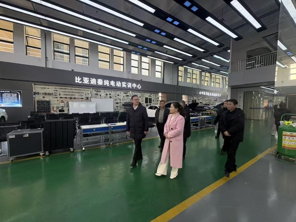 座谈会后,方高文陪同考察团参观了学校业财税专业产教融合实训基地、智能制造实训基地、新能源汽车实训基地及电子信息实训基地。