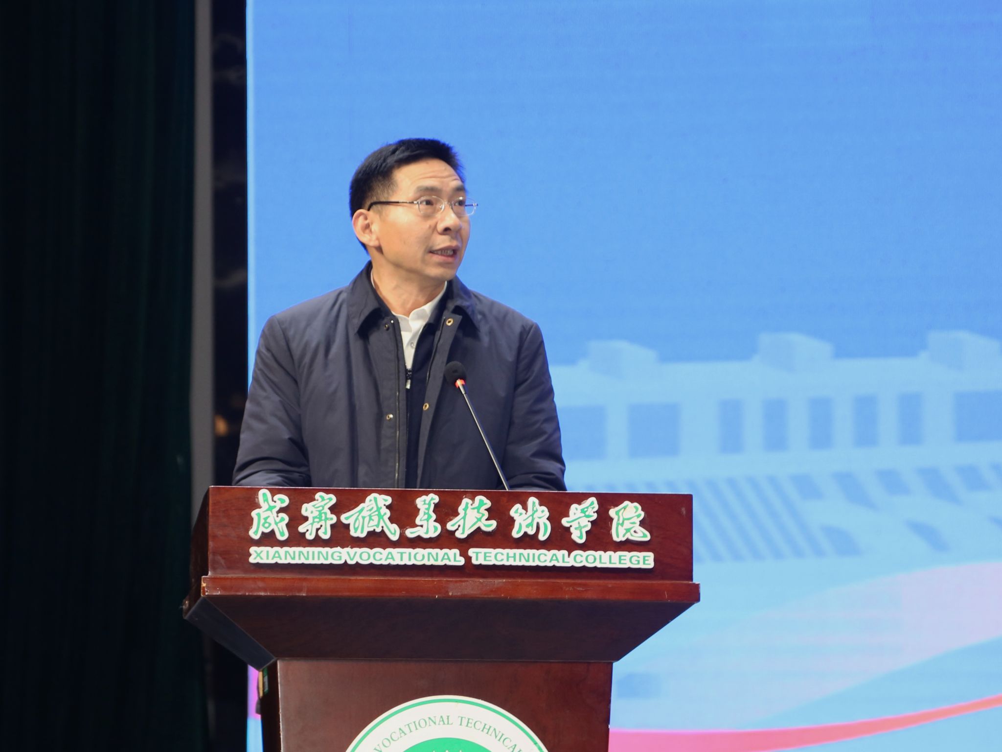 开赛式由咸宁职业技术学院教务处处长万虎主持,全体人员起立奏唱国歌,拉开了大赛序幕。咸宁职业技术学院党委书记高焕清致欢迎词,他详细介绍了学校的办学历史、师资力量与专业建设成果。他表示,学校将以高度的责任感做好赛事保障,全力打造公平公正、优质高效的竞赛环境。咸宁市教育局职成教科科长张文达随后发表讲话,对大赛的举办意义给予肯定。