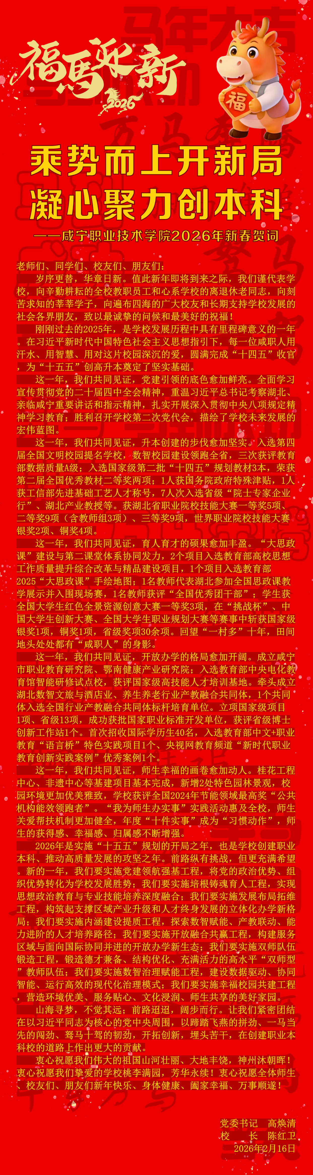 咸宁职业技术学院2026年新春贺词