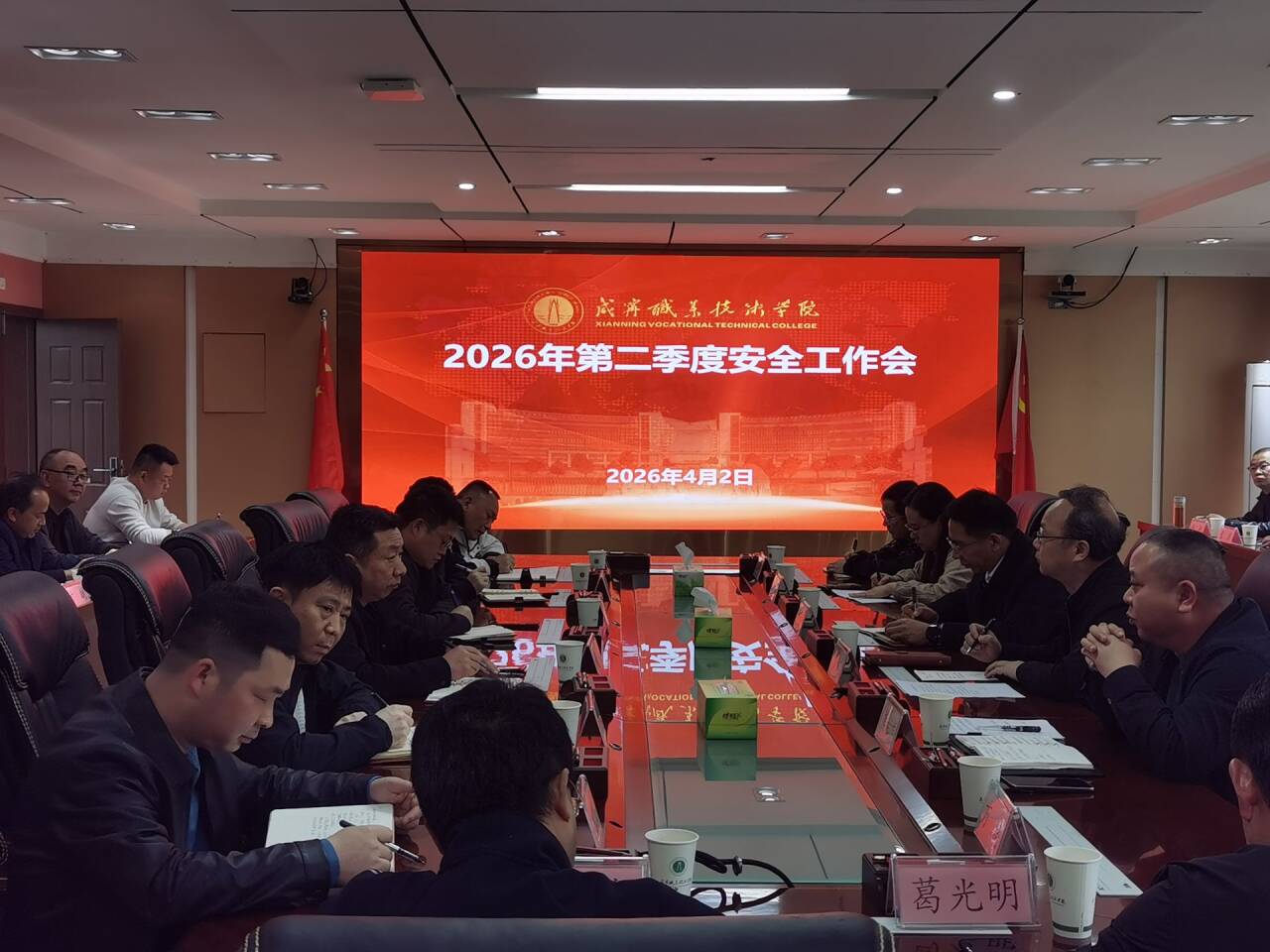 为深入贯彻落实立德树人根本任务,筑牢校园安全防线,确保师生生命与财产安全,营造和谐稳定的育人环境,4月2日下午,我校在厚德楼409会议室召开第二季度安全工作会。校党委书记高焕清出席会议,教务处、人事处、总务处、合作交流处、资产经营公司、保卫处、学工处负责人,有学生的二级学院党总支书记、副书记,保卫处、学工处副处长参加会议。会议由党委委员、宣传部(统战部)部长曾志主持。