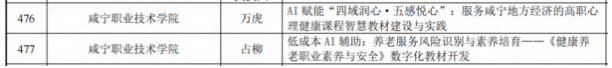 根据《2026年度“人工智能+职业教育智慧教材体系化建设项目”立项结果公示》(信息化教指委〔2026〕14号),我校8个项目成功获批一般项目,覆盖低空经济、生成式人工智能、新能源汽车、心理健康教育、健康养老、机器视觉等多个前沿方向,体现了我校在智慧教材建设上的系统规划与特色布局。