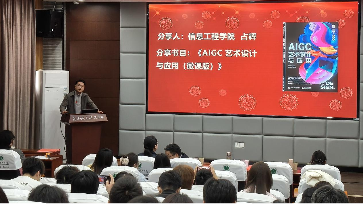 随后,读书分享环节将活动推向高潮。信息工程学院人工智能教研室陈小礼、戴雅婷、占辉、杨佳欣、黄茜子5位教师依次登台,围绕人工智能领域最新著作展开深度读书分享。陈小礼老师分享《人工智能:现代方法》,系统解读人工智能核心理论与技术框架,为师生搭建AI知识体系;戴雅婷老师分享《生成式人工智能素养》,聚焦生成式AI应用场景与能力素养,助力师生提升数字时代核心竞争力;占辉老师分享《AIGC艺术设计与应用(微课版)》,探索AI与艺术设计的跨界融合,展现技术赋能创意的无限可能;杨佳欣老师分享《AI智能体设计实战:用Coze从零打造21个贴身AI助手》,以实战案例讲解AI智能体开发,兼具实操性与趣味性;黄茜子老师分享《人工智能安全导论》,聚焦AI安全风险与防护策略,引导师生树立安全、合规的AI应用理念。