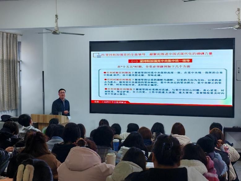 12月8日16时,咸宁职业技术学院党委委员、副校长方高文在生物工程学院(乡村振兴学院)105教室,以《党的二十届四中全会精神——为加快农业农村现代化贡献涉农高校智慧和力量》为主题,为生物工程学院(乡村振兴学院)生物制药技术1、2班全体学生及学院教职工开展了一场内容充实、导向鲜明的专题宣讲。生物工程学院(乡村振兴学院)党总支书记王宗莉主持宣讲并作开场致辞。
